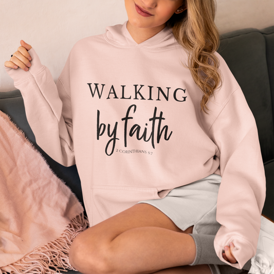 Walking by Faith – Christian Fleece Hoodie for Women (2 Corinthians 5:7)