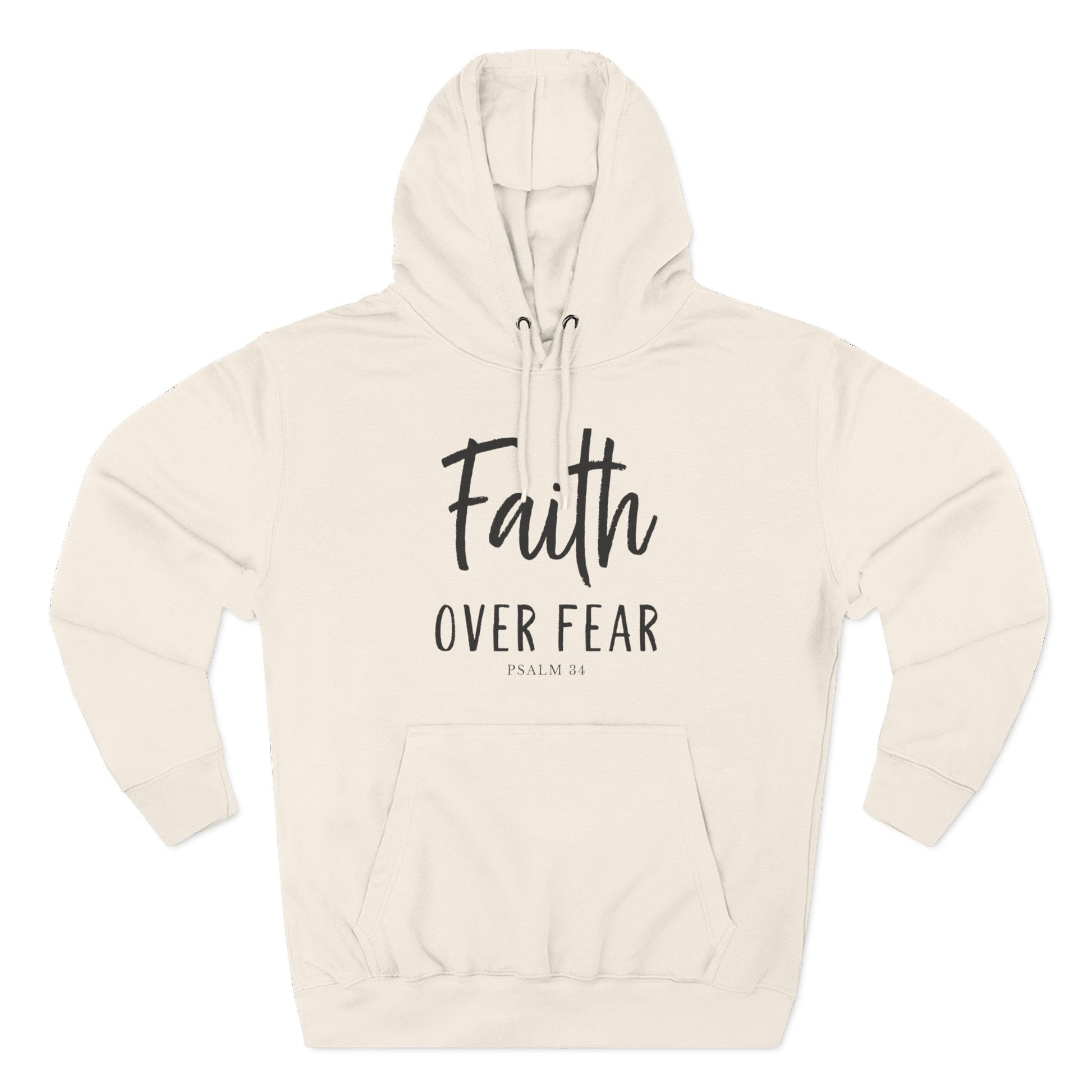 Faith Over Fear – Christian Fleece Hoodie for Women (Psalm 34)