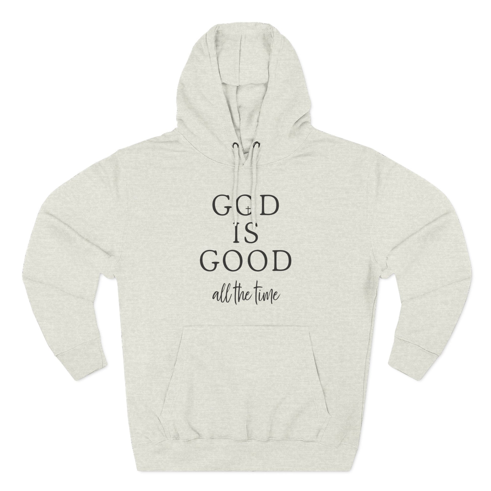 Celebrate God’s unchanging goodness with our “God Is Good — All the Time” Premium Fleece Hoodie.