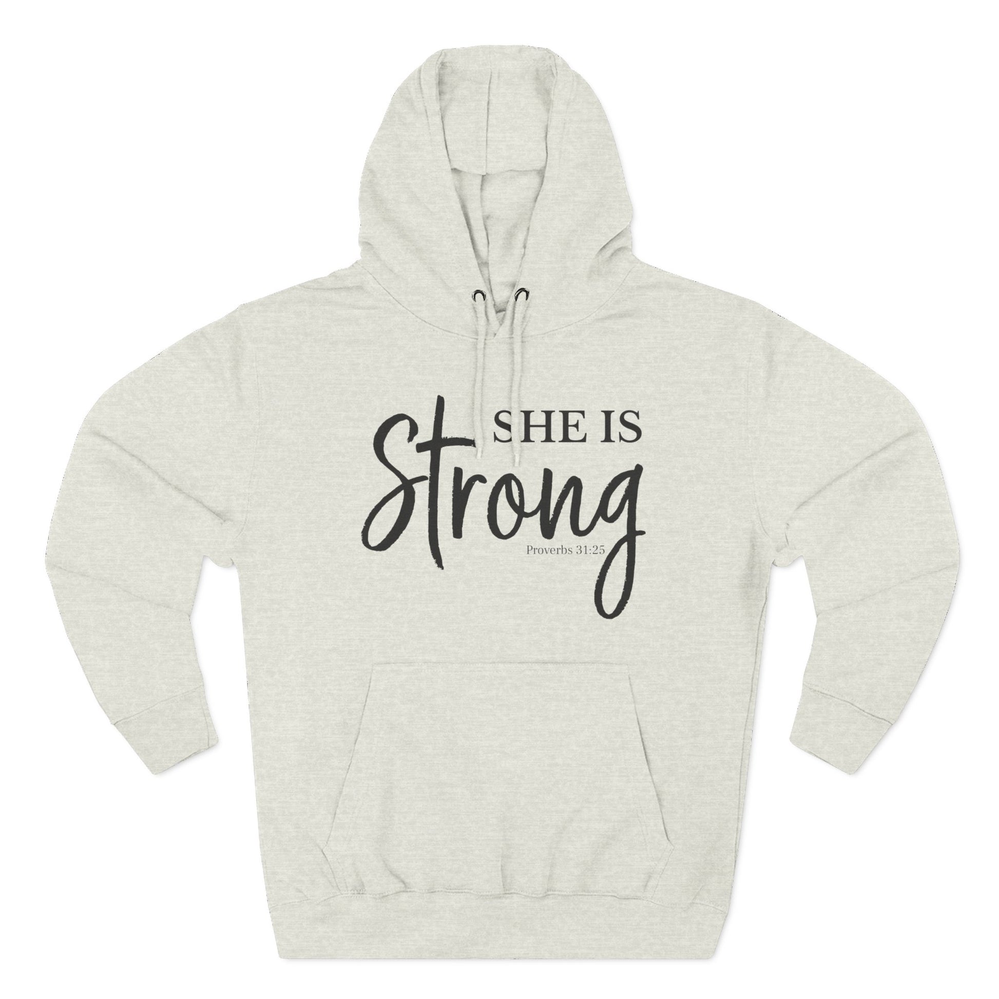 She Is Strong - Christian Fleece Hoodie for Women (Proverbs 31:25)